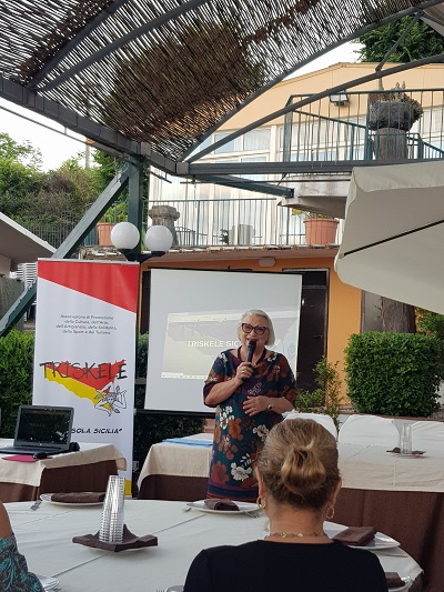 5)Creazione di un partenariato con le seguenti associazioni ci da l’autonomia di organizzare progetti comuni e attività condivise, esse sono: Mettiamoci in gioco presidente dott.ssa Daniela Di Mauro, B.C presidente prof.ssa Maria Teresa Di Blasi, Sicilia Antica avv.to Paolo Marescalco e AIIG presidente prof.re Antonio Danese, Liberamente Catania dott.re Simone Centamore e il Gruppo dei Canterini dell’Etna di Rita Corona presidente dott.re Vincenzo Amaro. 6) Presentazione e rendiconto del bilancio 2020-2021. 7) Saluti agli ospiti ed anticipazioni per il nuovo anno. (In foto: Letizia Iannello presenta il sito Triskele)